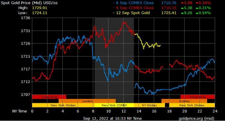 Giá vàng tương lai giao tháng 10/2022 trên sàn Comex New York tăng 3,2 USD lên 1.722 USD/ounce.