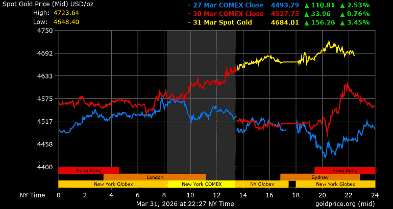 Giá vàng tương lai giao tháng 6/2026 trên sàn Comex New York hôm qua tăng 121,1 USD, tương ứng tăng 2,66% lên mức 4.678,6 USD/ounce.