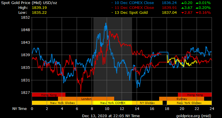 Giá vàng tương lai giao tháng 1/2021 trên sàn Comex New York giảm 4,3 USD xuống 1.837,1 USD/ounce.
