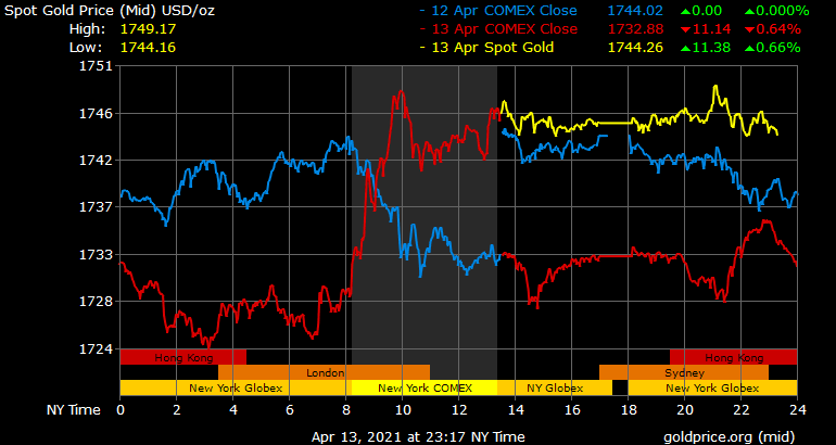 Giá vàng tương lai giao tháng 5 trên sàn Comex New York giảm 1,5 xuống lên 1.745 USD/ounce.