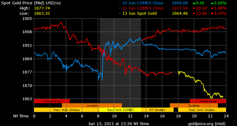 Giá vàng tương lai giao tháng 7 trên sàn Comex New York giảm 17,4 USD xuống 1.877,8 USD/ounce.