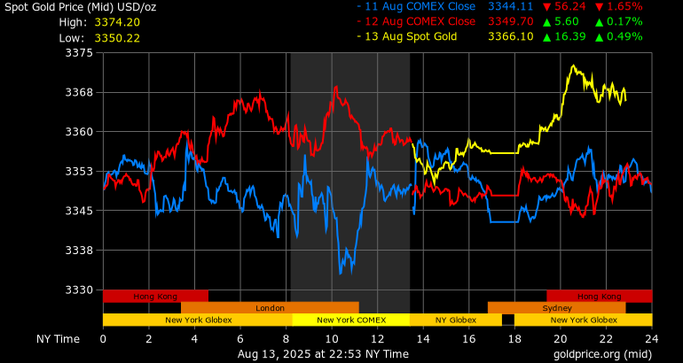 Trên thị trường vàng thế giới, giá vàng giao ngay chốt phiên hôm qua tại Mỹ tăng 7,4 USD lên mức 3.355,7 USD/ounce. Sang phiên châu Á sáng nay, giá vàng tiếp tục tăng 10,4 USD lên 3.366,1 USD/ounce.