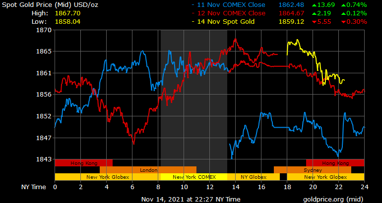 Giá vàng tương lai giao tháng 12 trên sàn Comex New York giảm 7 USD xuống 1.861,5 USD/ounce.