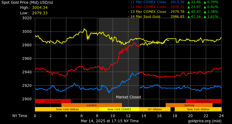 Giá vàng tương lai giao tháng 4/2025 trên sàn Comex New York tăng 9,8 USD, tương ứng tăng 0,33% lên mức 3.001,1 USD/ounce.