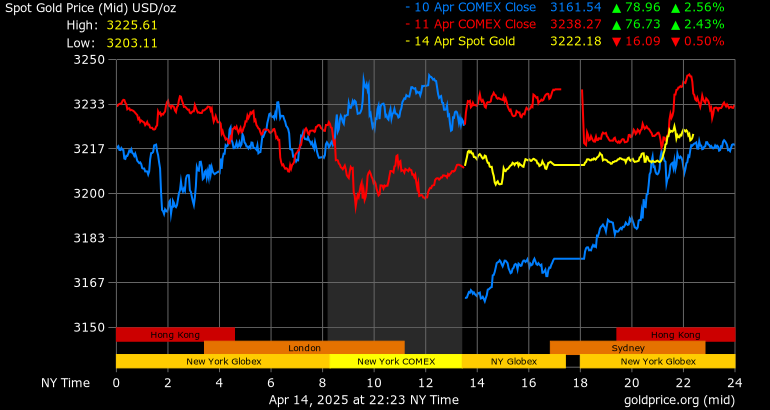 Trên thị trường vàng thế giới, giá vàng giao ngay chốt phiên hôm qua tại Mỹ giảm 27,3 USD xuống mức 3.210,7 USD/ounce. Sang phiên châu Á sáng nay, giá vàng đảo chiều tăng 10,2 USD lên 3.220,9 USD/ounce.