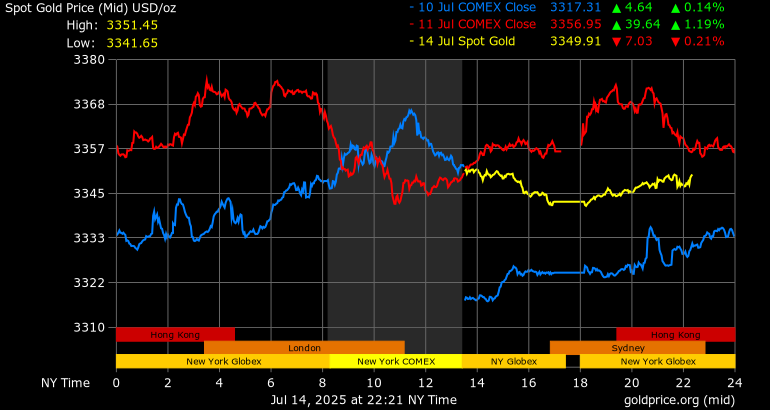 Trên thị trường vàng thế giới, giá vàng giao ngay chốt phiên hôm qua tại Mỹ giảm 11,9 USD xuống mức 3.343,8 USD/ounce. Sang phiên châu Á sáng nay, giá vàng đảo chiều tăng 7 USD lên 3.350,8 USD/ounce.