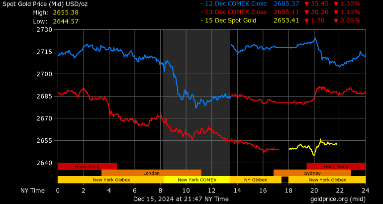 Trên thị trường vàng thế giới, giá vàng giao ngay chốt phiên cuối tuần qua tại Mỹ giảm 32,1 USD xuống 2.648,7 USD/ounce. Sang phiên châu Á sáng nay, giá vàng đảo chiều tăng 4,6 USD lên 2.653,3 USD/ounce.