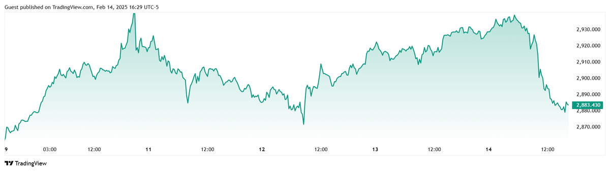 Mức 2.900 USD/ounce đã cung cấp sự hỗ trợ vững chắc trong suốt cả tuần, khi giá vàng tăng giảm liên tục theo dữ liệu kinh tế và các tuyên bố tác động đến thị trường mỗi ngày.
