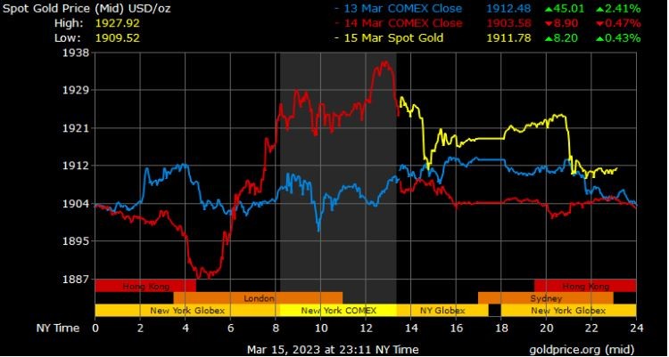 Lần lượt các cú sụp đổ của các ngân hàng Silicon Valley Bank, Signature Bank và Silvergate Bank ở Mỹ, đã giúp vàng tăng vọt và giao dịch vững chắc trên mốc 1.900 USD/ounce. Mặc dù chính phủ Hoa Kỳ đã cố gắng xoa dịu nỗi sợ hãi bằng cách nói rằng tất cả tiền của người gửi tiền tại hai ngân hàng sẽ được đảm bảo, nhưng thất bại này đã bộc lộ những rạn nứt đáng kể trên thị trường tài chính đang bắt đầu ảnh hưởng đến các tổ chức toàn cầu.