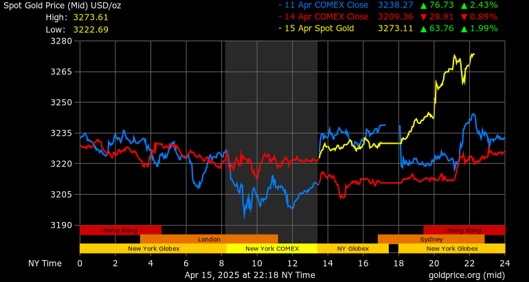 Trên thị trường vàng thế giới, giá vàng giao ngay chốt phiên hôm qua tại Mỹ tăng 19,1 USD lên mức 3.229,8 USD/ounce. Sang phiên châu Á sáng nay, giá vàng tiếp tục tăng 43,8 USD lên 3.273,6 USD/ounce.