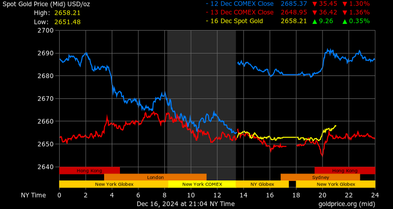 Trên thị trường vàng thế giới, giá vàng giao ngay chốt phiên hôm qua tại Mỹ tăng 4,1 USD lên 2.652,8 USD/ounce. Sang phiên châu Á sáng nay, giá vàng tiếp tục tăng 4,9 USD lên 2.657,7 USD/ounce.