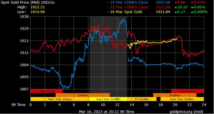 Giá vàng tương lai giao tháng 4/2023 trên sàn Comex New York giảm 8,3 USD xuống mức 1.923 USD/ounce.