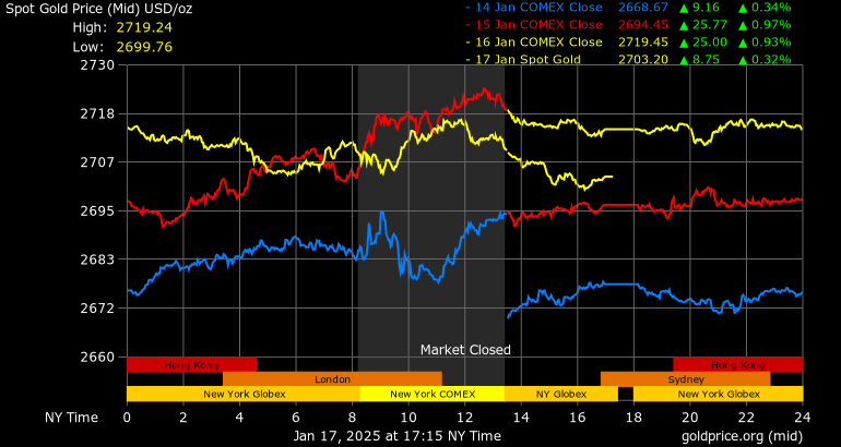 Giá vàng hôm nay ngày 18/1: Chịu áp lực, vàng vẫn vững vàng trên mốc 2.700 USD/ounce
