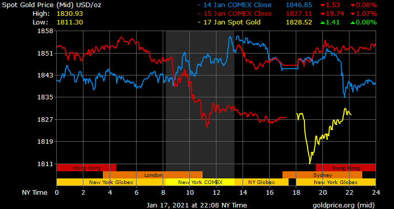 Giá vàng tương lai giao tháng 3 trên sàn Comex New York giảm 3,9 USD xuống mức 1.827,8 USD/ounce.