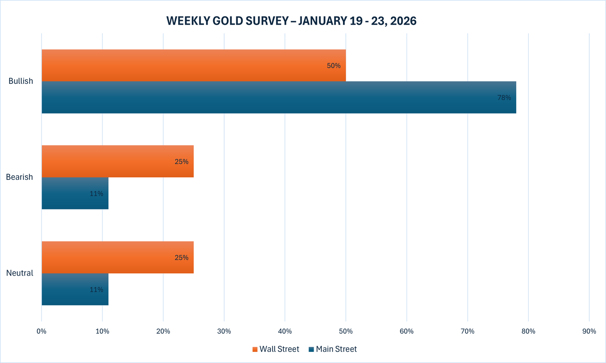 Khảo sát vàng hàng tuần mới nhất của Kitco News cho thấy Phố Wall đang chia rẽ về triển vọng ngắn hạn của vàng, trong khi các nhà đầu tư nhỏ lẻ lại củng cố quan điểm lạc quan chiếm đa số.