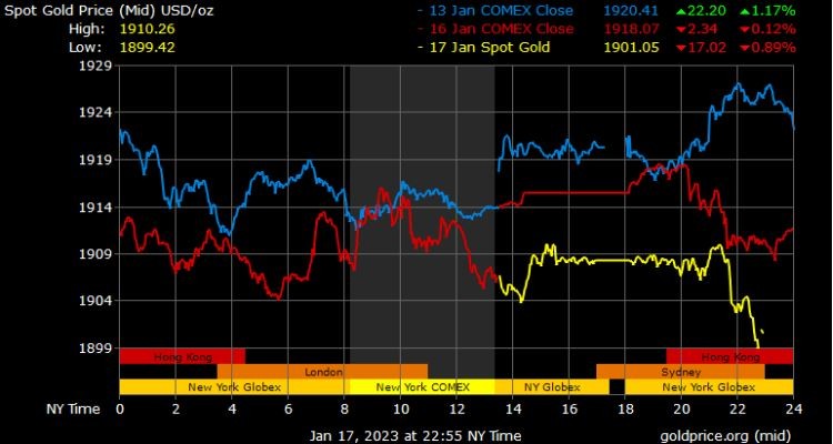 Giá vàng tương lai giao tháng 2/2023 trên sàn Comex New York giảm 11,8 USD xuống 1.903,3 USD/ounce.