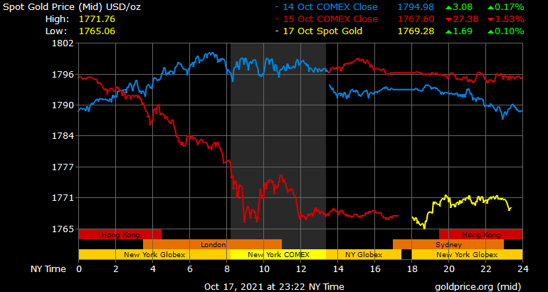 Giá vàng tương lai giao tháng 11 trên sàn Comex New tăng 2,5 USD lên 1.770 USD/ounce.