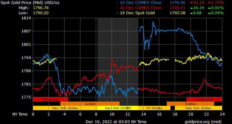 Giá vàng tương lai giao tháng 2/2023 trên sàn Comex New York tăng 12,4 USD lên mức 1.800,2 USD/ounce.