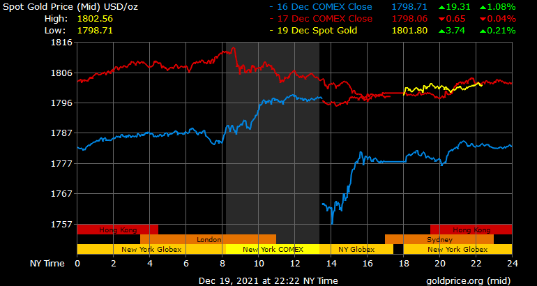 Giá vàng tương lai giao tháng 1/2022 trên sàn Comex New York giảm hơn 2 USD xuống 1.801,7 USD/ounce.