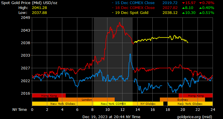 Giá vàng tương lai giao tháng 2/2024 trên sàn Comex New York tăng 11,6 USD, tương ứng tăng 0,57% lên 2.052,1 USD/ounce.