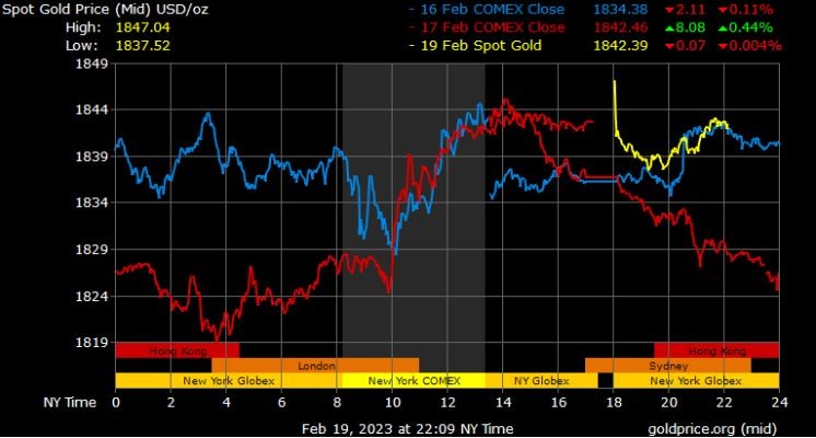 Giá vàng tương lai giao tháng 4/2023 trên sàn Comex New York giảm 1,6 USD xuống 1.850,2 USD/ounce.