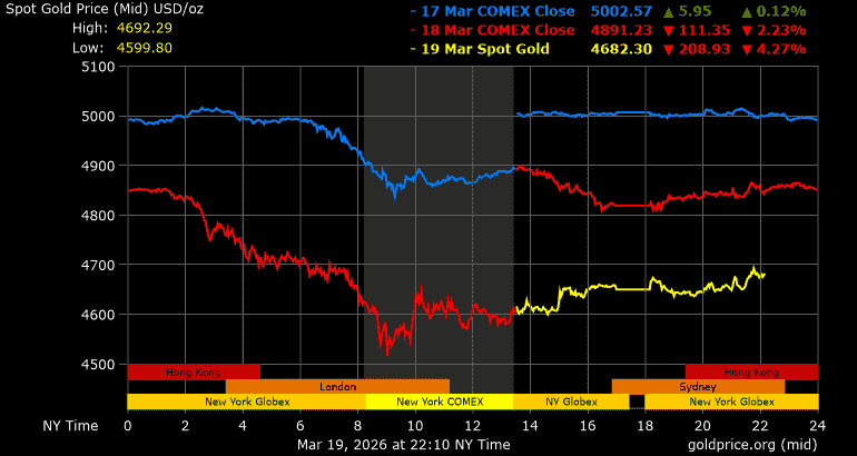 Trên thị trường vàng thế giới, giá vàng giao ngay chốt phiên hôm qua tại Mỹ tiếp tục giảm mạnh 167,7 USD, tương ứng giảm 3,48% xuống mức 4.650,7 USD/ounce. Sang phiên châu Á sáng nay, giá vàng đảo chiều tăng 30,9 USD lên mức 4.681,7 USD/ounce.
