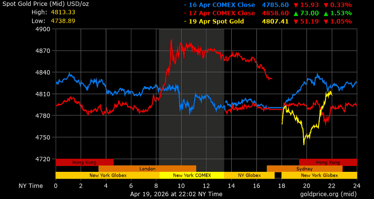 Trên thị trường vàng thế giới, giá vàng giao ngay chốt phiên cuối tuần qua tại Mỹ tăng 41 USD, tương ứng tăng 0,85% lên mức 4.831,6 USD/ounce. Sang phiên châu Á sáng nay, giá vàng đảo chiều giảm 26,6 USD xuống mức 4.805 USD/ounce.