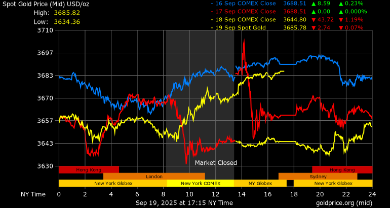 Trên thị trường vàng thế giới, giá vàng giao ngay chốt phiên hôm qua tại Mỹ tăng 40,8 USD, tương ứng tăng 1,12% lên mức 3.685 USD/ounce.