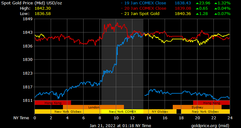 Giá vàng tương lai giao tháng 2/2022 trên sàn Comex New York giảm hơn 1 USD xuống 1.841,5 USD/ounce.