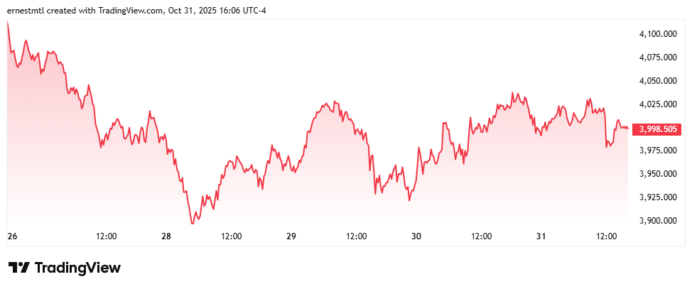 Giá vàng tiếp tục giảm trong tuần này, nhưng ngay cả chu kỳ cắt giảm lãi suất bị đe dọa và các cuộc đàm phán thương mại hòa giải giữa Hoa Kỳ và Trung Quốc cũng không thể đẩy giá kim loại màu vàng xuống dưới mức 3.900 USD/ounce.