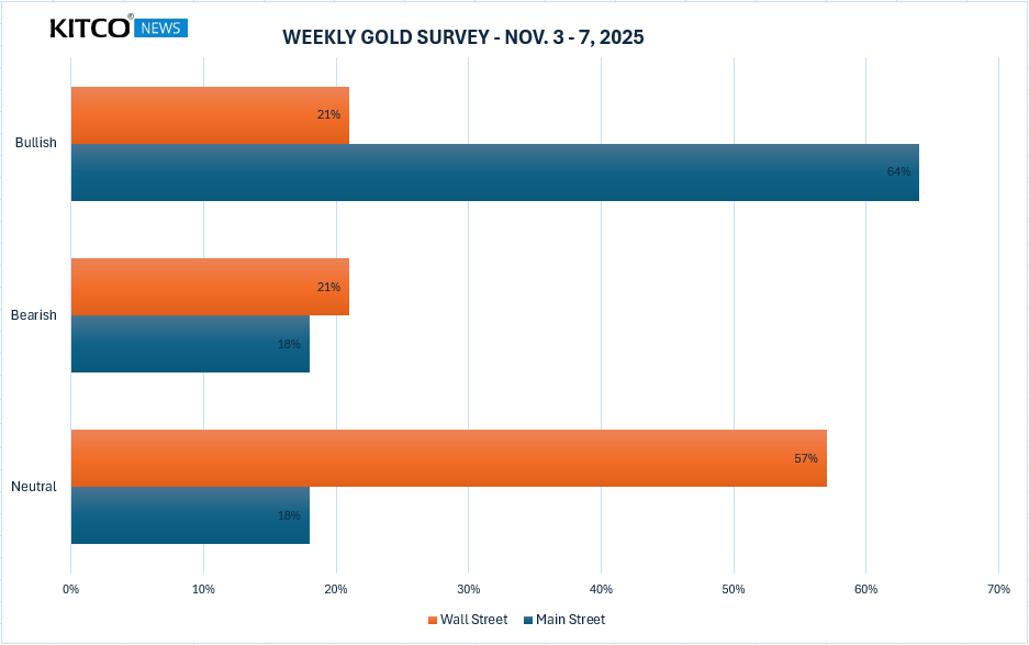 Khảo sát vàng hàng tuần mới nhất của Kitco News cho thấy các chuyên gia trong ngành vẫn trung lập và cân bằng như trước, trong khi các nhà giao dịch bán lẻ trở nên lạc quan hơn sau màn trình diễn kiên cường của vàng.
