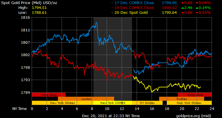 Giá vàng tương lai giao tháng 1/2022 trên sàn Comex New York giảm hơn 4 USD xuống 1.789,6 USD/ounce.