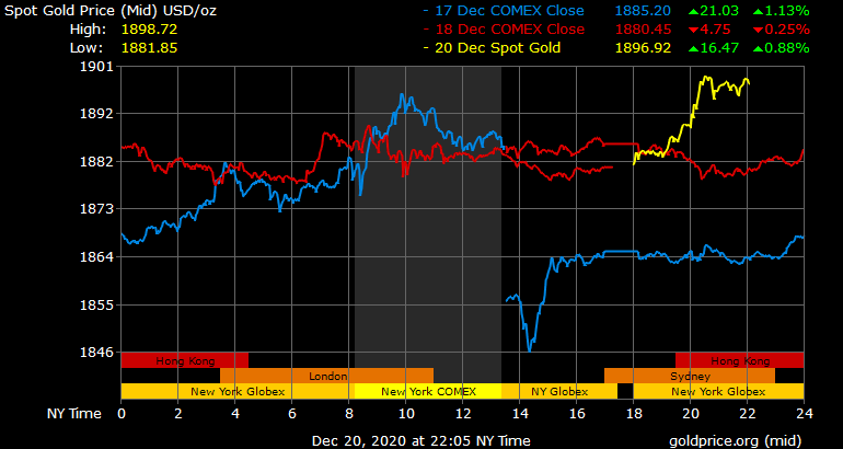 Giá vàng tương lai giao tháng 1/2021 trên sàn Comex New York tăng 12,1 USD lên 1.898,6 USD/ounce.