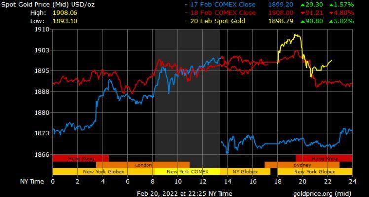 Trong tuần vừa qua, mối đe dọa về một cuộc chiến tranh tiềm tàng ở Đông Âu và lo ngại rằng các ngân hàng trung ương sẽ không thể kiềm chế lạm phát đã đẩy giá vàng lên 1.900 USD/ounce, mức cao nhất trong 8 tháng.