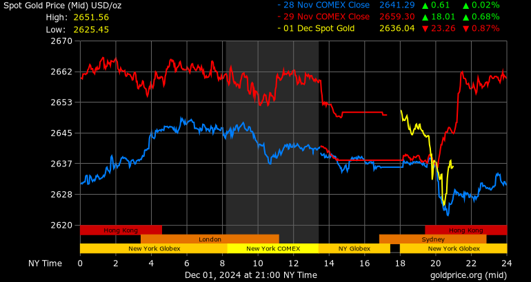 Trên thị trường vàng thế giới, giá vàng giao ngay chốt phiên cuối tuần qua tại Mỹ tăng 12,8 USD lên 2.650,35 USD/ounce. Sang phiên châu Á sáng nay, giá vàng đảo chiều giảm 14,7 USD xuống 2.635,7 USD/ounce.