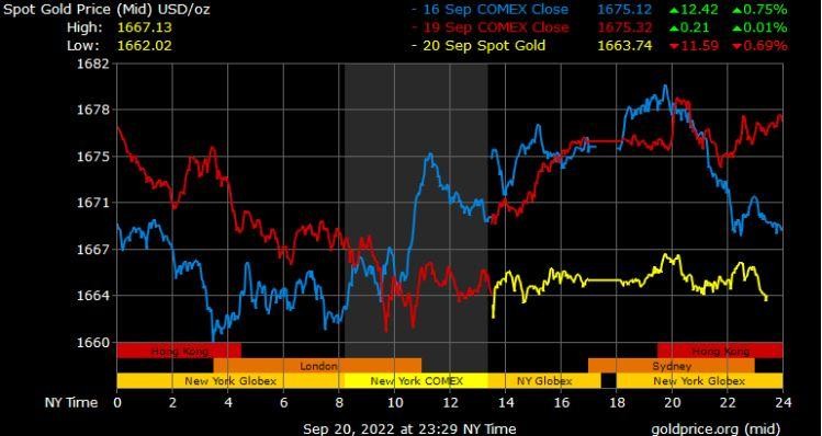 Giá vàng tương lai giao tháng 10/2022 trên sàn Comex New York giảm 6,6 USD xuống 1.661 USD/ounce.