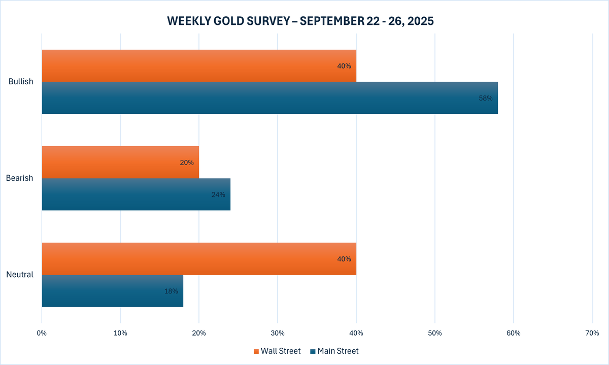 Khảo sát vàng hàng tuần mới nhất của Kitco News cho thấy tâm lý Phố Wall đang quay trở lại xu hướng trung lập hơn sau khi Fed cắt giảm lãi suất, trong khi các nhà đầu tư Main Street cũng giảm bớt tâm lý lạc quan của họ.