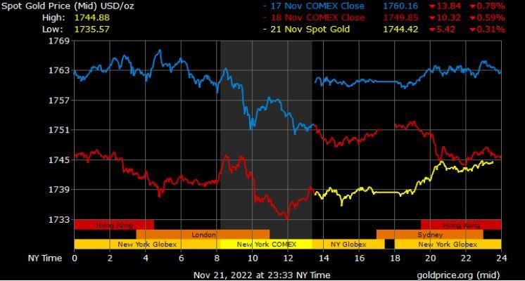 Giá vàng tương lai giao tháng 12/2022 trên sàn Comex New York giảm 14,8 USD xuống mức 1.739,6 USD/ounce.