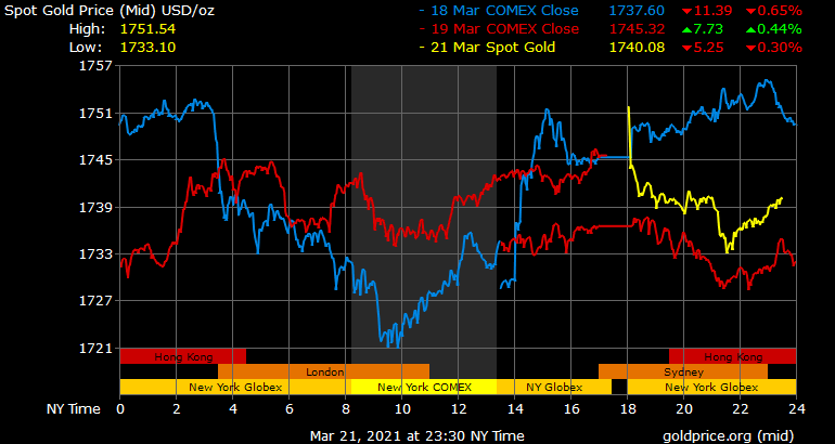 Giá vàng tương lai giao tháng 4 trên sàn Comex New York giảm 3,3 USD xuống 1.738,4 USD/ounce.