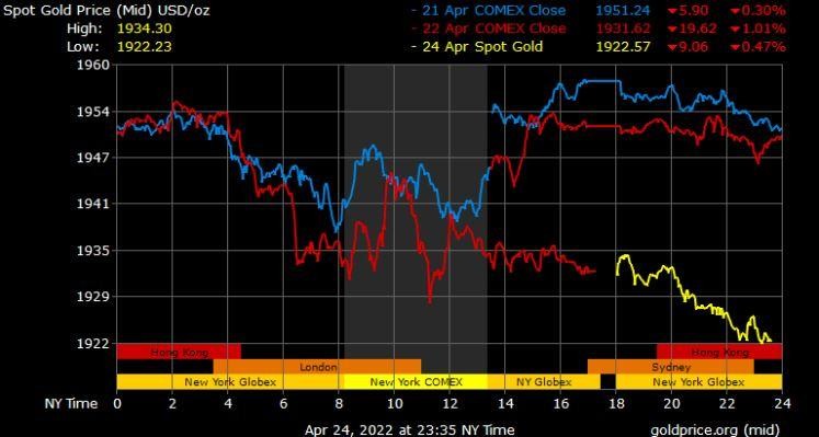 Vàng tiếp tục giảm do FED chuẩn bị chống lạm phát. Trong những tuyên bố gần đây, Chủ tịch Powell đã duy trì mức lạm phát đã đạt đỉnh, chỉ là tạm thời và sẽ bắt đầu giảm. Tuy nhiên, ông buộc phải đánh giá lại những giả định đó dựa trên thực tế chỉ số CPI hiện ở mức 8,5% cho tháng 3 và chỉ số PCE đạt 6,4% vào tháng 2. Số PCE cho tháng 3 sẽ được phát hành vào ngày 29/4.