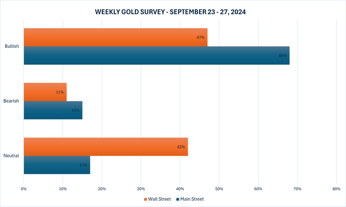 Khảo sát vàng hàng tuần mới nhất của Kitco News cho thấy các nhà đầu tư bán lẻ rất lạc quan về khả năng tăng giá vàng vào tuần tới, trong khi các chuyên gia trong ngành chia đều quan điểm giữa giá vàng tăng mạnh hơn và giá vàng hợp nhất trong ngắn hạn.