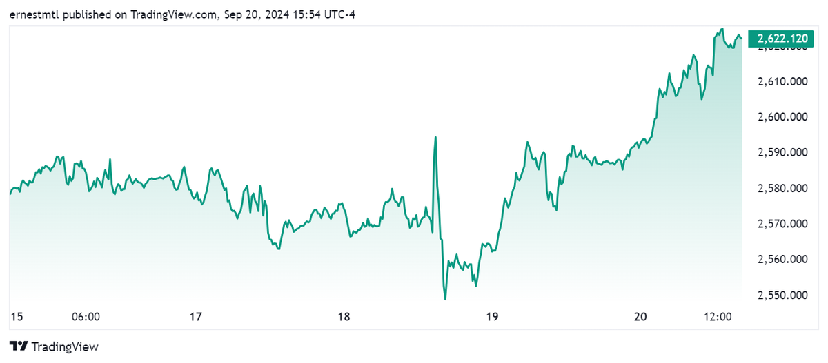 Vàng đã dễ dàng vượt qua mốc 2.600 USD/ounce sau khi kết thúc cuộc họp báo của chủ tịch Fed Jerome Powell và đã liên tục phá đỉnh mới, đạt mức cao nhất mọi thời đại trong tuần qua.