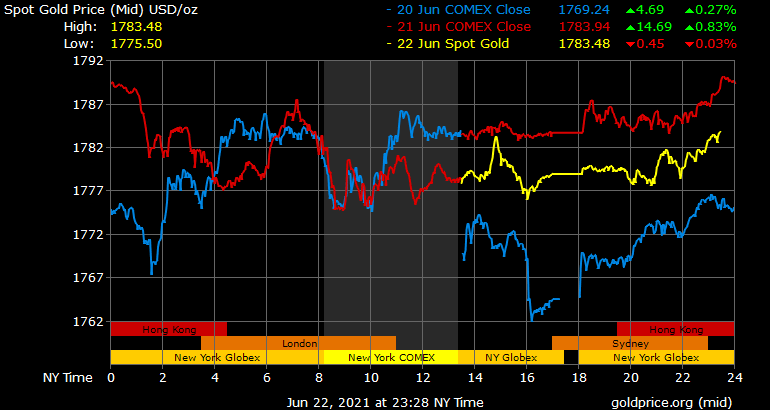 Giá vàng tương lai giao tháng 7 trên sàn Comex New York tăng 4,5 USD lên 1.781 USD/ounce.