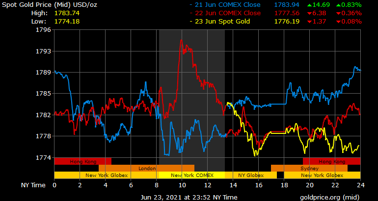 Giá vàng tương lai giao tháng 7 trên sàn Comex New York giảm 8 USD xuống 1.774,5 USD/ounce.