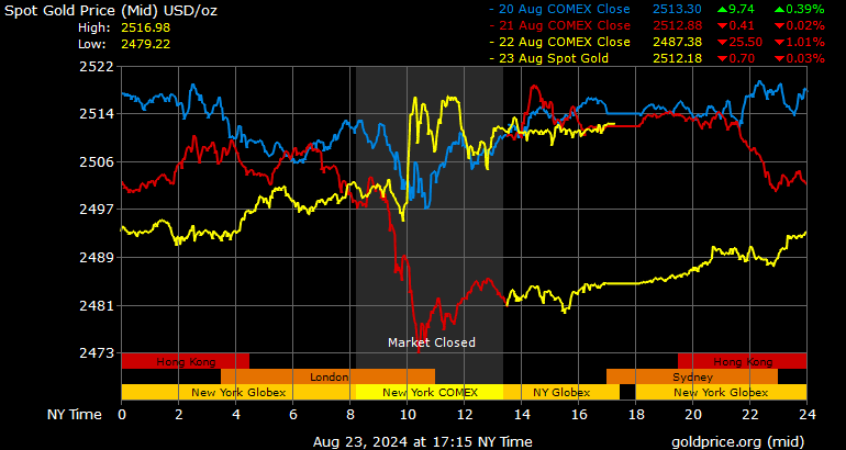 Trên thị trường vàng thế giới, giá vàng giao ngay chốt phiên hôm qua tại Mỹ tăng 27,8 USD lên 2.512,5 USD/ounce.