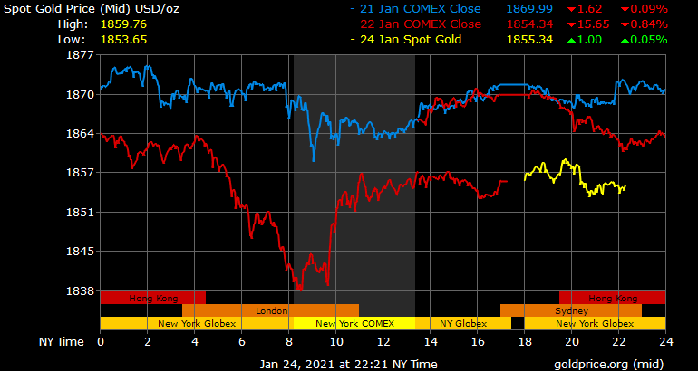 Giá vàng tương lai giao tháng 3 trên sàn Comex New York giảm 1,6 USD xuống 1.856,3 USD/ounce.