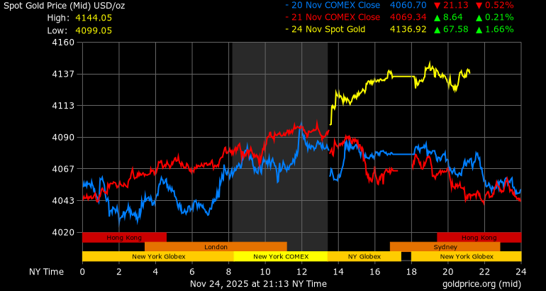 Trên thị trường vàng thế giới, giá vàng giao ngay chốt phiên hôm qua tại Mỹ tăng 69 USD, tương ứng tăng 1,7% xuống mức 4.065 USD/ounce. Sang phiên châu Á sáng nay, giá vàng tiếp tục tăng nhẹ 2,5 USD lên 4.136,5 USD/ounce.