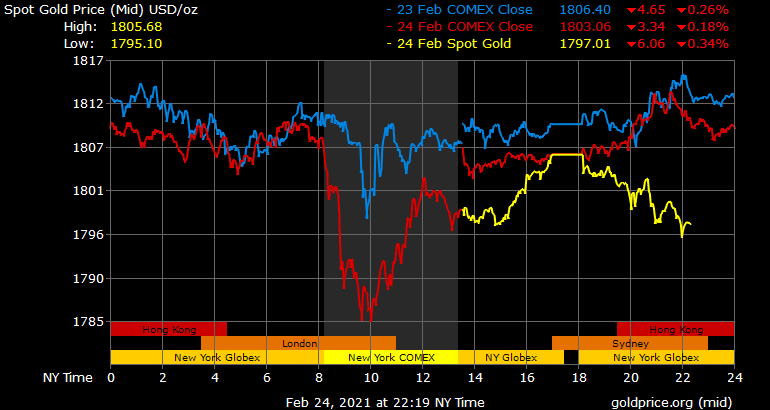 Giá vàng tương lai giao tháng 4 trên sàn Comex New York giảm 1,9 USD xuống 1.796 USD/ounce.