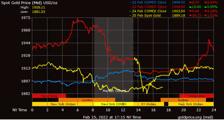 Sau cú sốc địa chính trị ban đầu về cuộc xung đột vũ trang của Nga vào Ukraine, vàng đã lùi xuống dưới mức 1.900 USD/ounce. Tuy nhiên, các nhà phân tích vẫn đang cảnh báo về sự biến động cao ở phía trước đối với kim loại quý này.