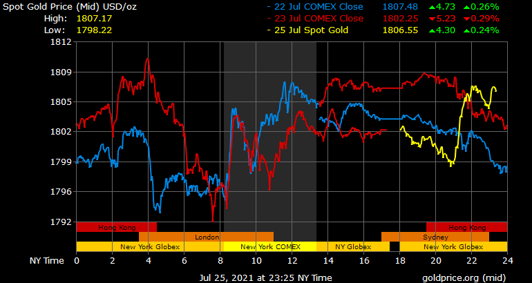 Giá vàng tương lai giao tháng 8 trên sàn Comex New York tăng 5,8 USD lên 1.807,6 USD/ounce.